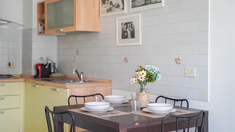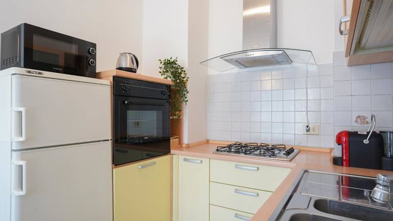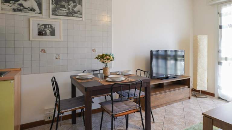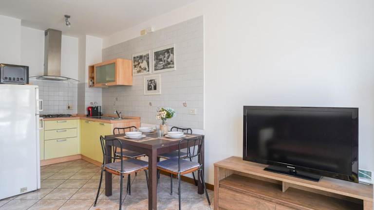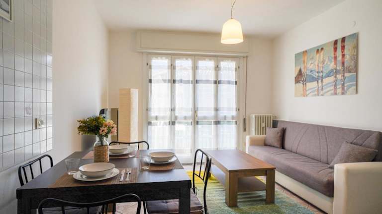 Die Ferienwohnung umfasst zwei Schlafzimmer, ein Wohnzimmer, eine gut ausgestattete Küche sowie ein Badezimmer mit Bidet und Dusche. Ein Balkon mit Bergblick sorgt für zusätzliche Bequemlichkeit. Handtücher und Bettwäsche werden bereitgestellt.