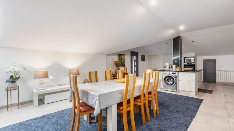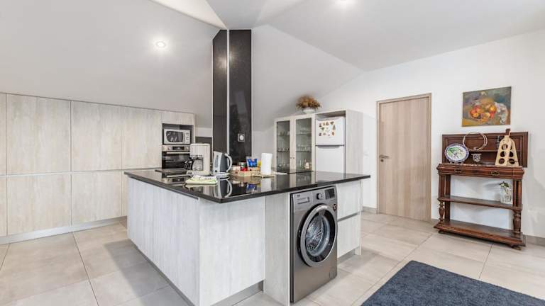 Die Villa besteht aus 4 Schlafzimmern, einem Wohnzimmer und einer voll ausgestatteten Küche, die einen Kühlschrank sowie eine Kaffeemaschine umfasst. Zudem stehen den Gästen 5 Badezimmer mit Dusche und Haartrockner zur Verfügung. Handtücher und Bettwäsche sind ebenfalls bereitgestellt.