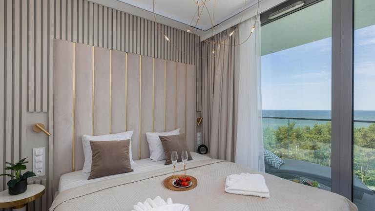 Das Cristallo Apartament Luxury Resort & SPA - Sea View by Renters Prestige bietet eine moderne Ferienwohnung mit einer Vielzahl von Annehmlichkeiten. Zur Ausstattung gehören ein Innenpool und eine Sauna. Es gibt einen 24-Stunden-Service an der Rezeption sowie kostenlosen Privatparkplatz und WLAN.