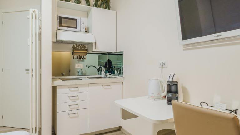Die Unterkunft verfügt über Zimmer mit einer voll ausgestatteten Küchenzeile, Flachbild-TV und einem eigenen Badezimmer, das ein Bidet, kostenlose Pflegeprodukte und einen Haartrockner umfasst. Für die Verpflegung stehen ein Kühlschrank, eine Mikrowelle sowie eine Herdplatte zur Verfügung. Zudem gibt es eine Kaffeemaschine und einen Wasserkocher. Schallisolierte Zimmer und allergikerfreundliche Zimmer sind ebenfalls verfügbar.