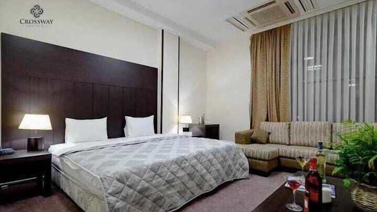 Das Crossway Hotel bietet Übernachtungsmöglichkeiten mit einer Gemeinschaftslounge sowie kostenlosem Privatparkplatz. Zu den Annehmlichkeiten zählen ein Restaurant, eine Bar, kostenloses Wifi sowie ein Zimmerservice. Die Rezeption ist rund um die Uhr besetzt. Zudem stehen den Gästen ein Geldautomat, eine Gepäckaufbewahrung und Währungsumtausch zur Verfügung.