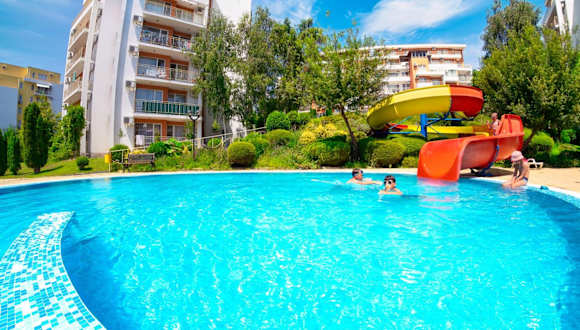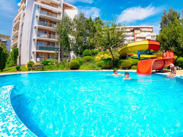 Der Crown Fort Club liegt 200 Meter vom Strand entfernt, eingebettet zwischen den Ferienorten Sveti Vlas und Elenite. Die unmittelbare Umgebung ist von einem Wald umgeben und bietet eine harmonische Kombination aus Meerblick und frischer Bergluft.