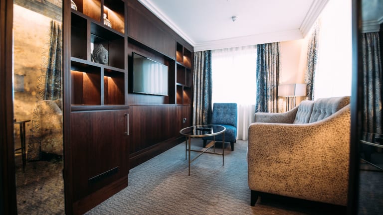 Die Zimmer sind mit Teppichböden ausgestattet und bieten ein Doppelbett, ein Queensize-Bett oder ein Kingsize-Bett. Für jedes Zimmer sind eine individuell steuerbare Heizung, ein Safe, eine Minibar sowie eine Tee-/Kaffeemaschine vorhanden. Zudem verfügen die Zimmer über ein Badezimmer mit Dusche und Badewanne sowie Haartrockner und Kosmetikartikel. Es sind auch rollstuhlgerechte Zimmer buchbar.