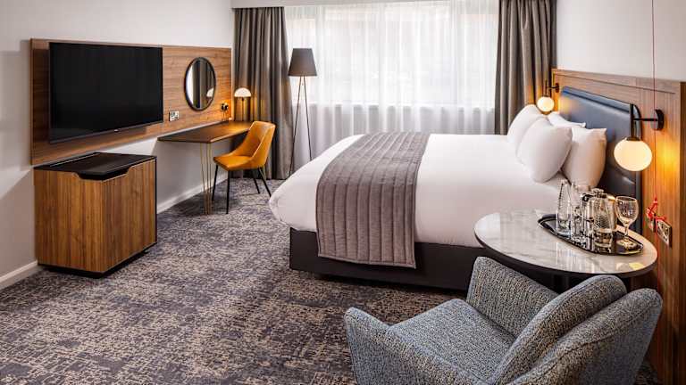 Das Crowne Plaza Hotel Manchester Airport bietet 294 Zimmer, die sich auf 4 Etagen verteilen, mit einem Aufzug erreichbar sind und behagliche Annehmlichkeiten für Geschäftsreisende und Feriengäste bereitstellen. Das mehrsprachige Personal sorgt für eine hilfsbereite Atmosphäre. Es gibt sowohl Indoor- als auch Outdoor-Pools sowie einen Garten zur Entspannung. Auch barrierefreie Einrichtungen werden angeboten.
