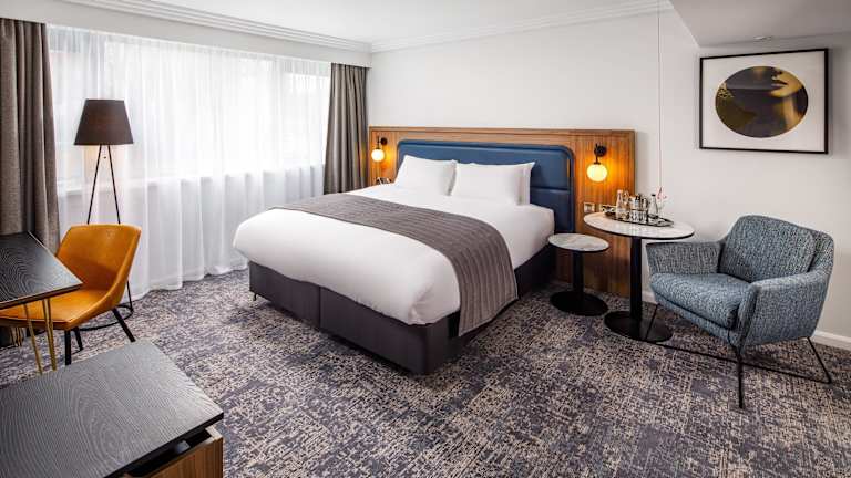 Das Hotel befindet sich ideal im Flughafenkomplex des Manchester Airports, etwa 10 Gehminuten vom Flughafen entfernt. Die Autobahnen M56, M60 und M62 sind schnell erreichbar, und das Stadtzentrum von Manchester liegt in nur 20 Minuten Autofahrt. Der nächste Bahnhof ist nur etwa 100 m entfernt.