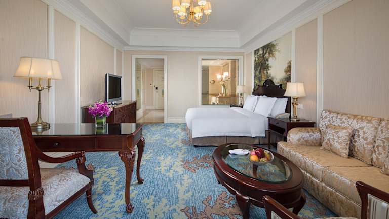 Es stehen mehrere gastronomische Einrichtungen zur Verfügung, darunter das chinesische Restaurant Tian Xiang Ge, das eine feine Auswahl an chinesischen Gerichten serviert, sowie das Restaurant Green Coffee, wo internationale Gerichte und ein Frühstücksbuffet angeboten werden. Das japanische Restaurant Tian Hai und die 1982 Beer Bar ergänzen das kulinarische Angebot.