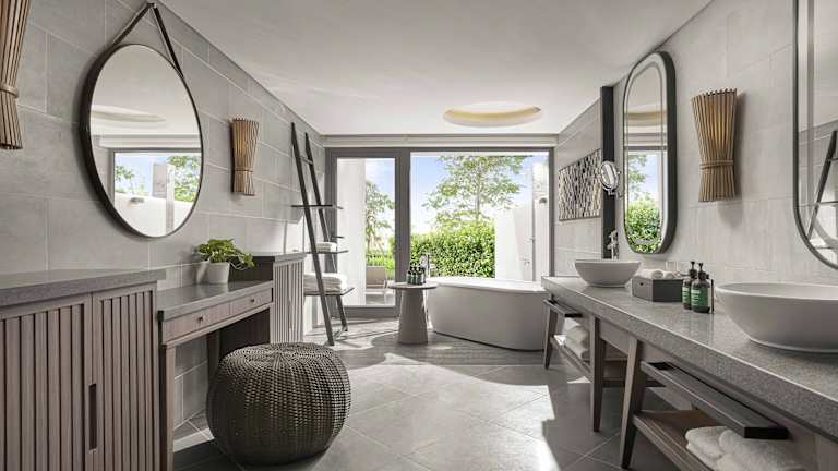 Die klimatisierten Zimmer sind ausgestattet mit einem Balkon oder einer privaten Terrasse, einem Safe, einer Minibar, einem Kühlschrank, einer Kaffeemaschine, einem Schreibtisch sowie einem Flachbild-TV. Jedes Zimmer verfügt über ein Badezimmer mit Dusche, Haartrockner und Bademänteln. Es stehen auch rollstuhlgerechte Zimmer zur Verfügung.