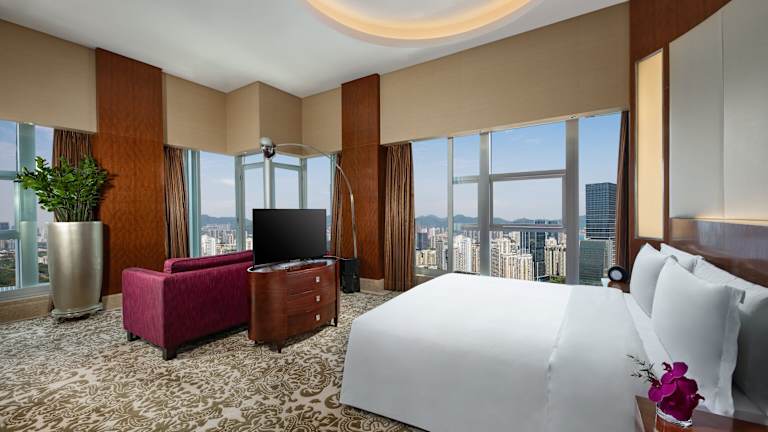 Das Hotel befindet sich im Herzen des Futian-Distrikts, dem neuen Geschäftszentrum von Shenzhen. In der Nähe liegen das Rathaus von Shenzhen, das internationale Messe- und Ausstellungszentrum sowie eine Metrostation. Der Lowu-Bahnhof ist in ca. 20 Minuten erreichbar, der Shekou-Fähranleger sowie der internationale Flughafen von Shenzhen, Baoan, in rund 25 Minuten. Die Grenze zu Huanggang befindet sich nur 5 Minuten entfernt.