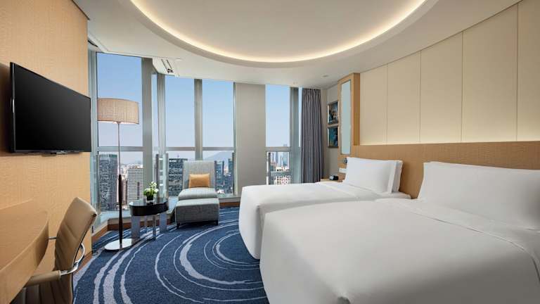 Die Zimmer sind mit Klimaanlage und Heizung ausgestattet. Zur Ausstattung gehören Teppichböden, ein Doppelbett, ein Queensize-Bett oder ein Kingsize-Bett sowie Zustellbetten auf Anfrage. Jede Unterkunft bietet einen Safe, eine Minibar, einen Minikühlschrank, eine Tee-/Kaffeemaschine und eine Hosenpresse. Zudem sind ein Telefon mit Direktwahl, ein TV-Gerät mit Satelliten-/Kabelempfang und Wifi vorhanden. Die Badezimmer verfügen über eine Dusche und eine Badewanne. Es sind auch rollstuhlgerechte Zimmer mit barrierefreien Badezimmern buchbar.