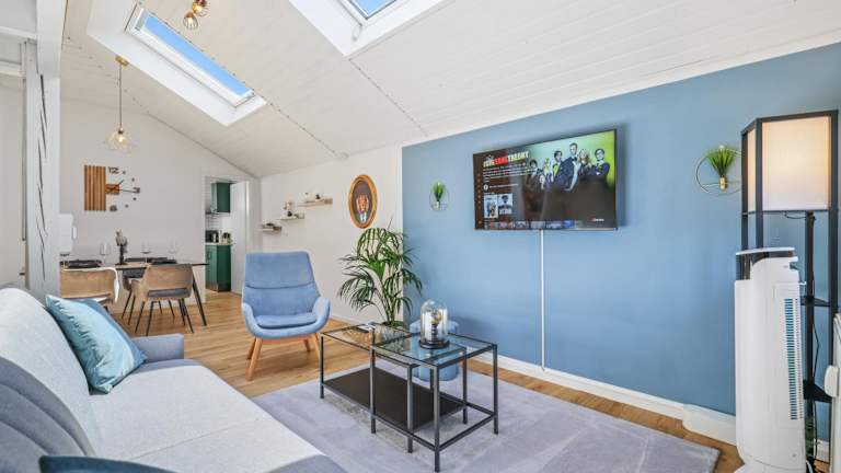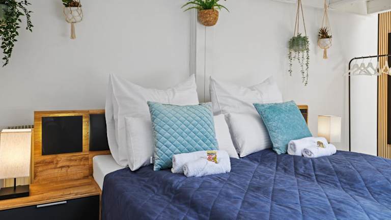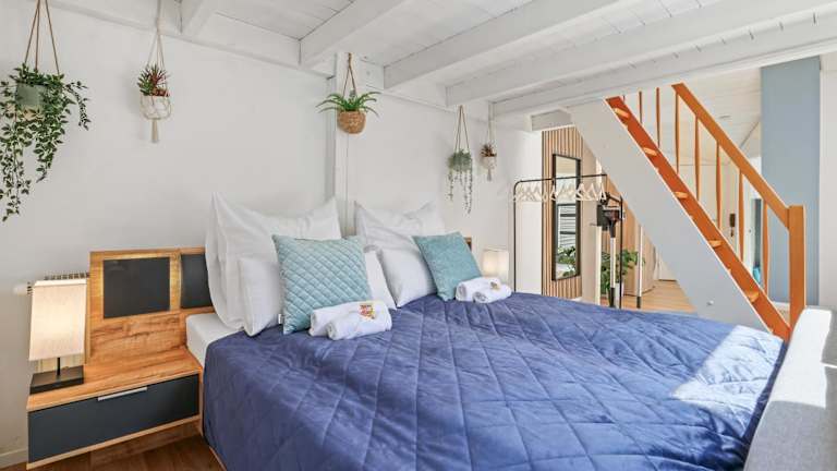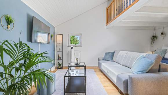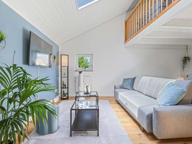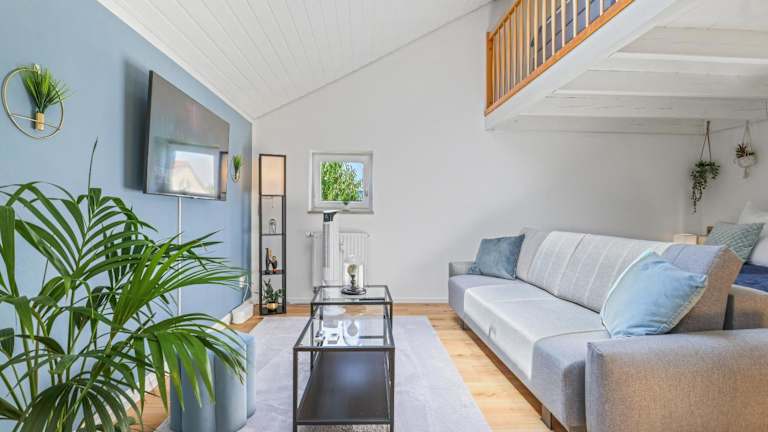 Die Maisonette umfasst zwei gut ausgestattete Schlafzimmer, ein Wohnzimmer sowie eine voll ausgestattete Küche mit Kühlschrank und Kaffeemaschine. Zudem steht ein Badezimmer mit Dusche und kostenlosen Pflegeprodukten zur Verfügung. Handtücher und Bettwäsche werden bereitgestellt. Die Zimmer sind schallisoliert und allergikerfreundlich, zudem steht eine Klimaanlage zur Verfügung.