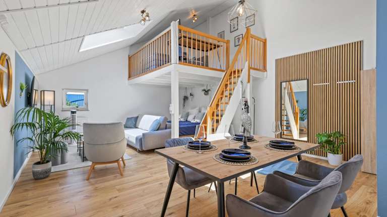 Die cruwzo I Maisonette ist eine gemütliche Ferienwohnung, die den Gästen einen Blick in den Garten bietet. Die Unterkunft ist ideal für Familien und bietet verschiedene Annehmlichkeiten wie kostenlosen Privatparkplatz, eine Gemeinschaftslounge und kostenloses WLAN. Die Unterkunft legt Wert auf Sauberkeit und Hygiene und wird zwischen den Aufenthalten desinfiziert.