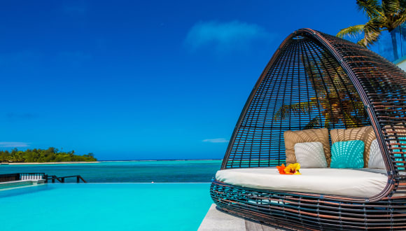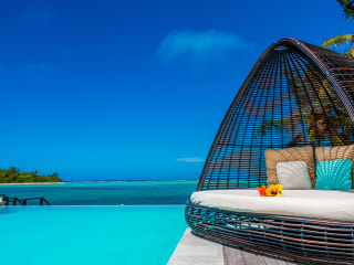 Das Crystal Blue Lagoon bietet stilvolle, moderne Villen, die von dem türkisfarbenen Wasser der Muri Lagune inspiriert sind. Es handelt sich um einen ruhigen Rückzugsort mit einem Infinity-Pool, der einen atemberaubenden Meerblick bietet.