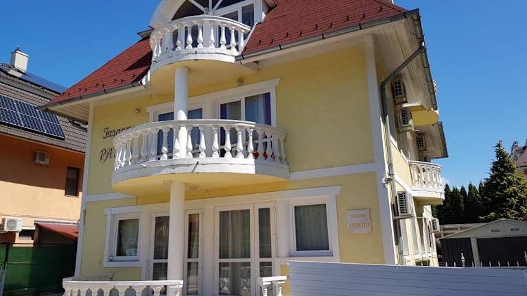 Das Crystal és Susanne Panzió ist in zwei Gebäuden untergebracht: dem blauen Crystal House und dem gelben Susanne House. Die Unterkunft bietet Zimmer und Apartments, die mit einem möblierten Balkon ausgestattet sind. WLAN steht in den öffentlichen Bereichen kostenfrei zur Verfügung. Ein Garten mit Sonnenterrasse und Grillmöglichkeiten sowie ein gemeinschaftlich genutzter Kinderspielplatz mit Trampolin stehen zur Verfügung. Auf Wunsch wird ein Flughafentransfer organisiert. Fahrzeuge können kostenfrei auf den Privatparkplätzen abgestellt werden.