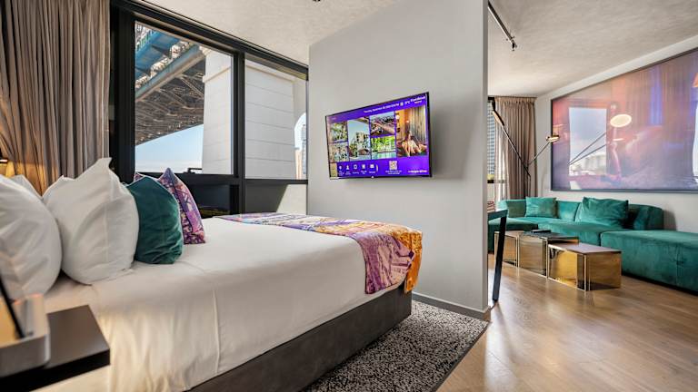 Hotel im Stile der Citizen M Hotelkette. Modern, mit Fotokunst an den Wänden und Gängen. Sensationeller Pool und Roof top Bar.