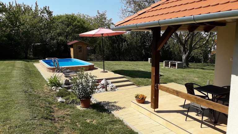 Die Cseresznyevirág Vendégházak verfügt über einen saisonalen Aussenpool, einen kostenlosen Privatparkplatz, einen Garten sowie eine Terrasse. Diese heimelige Unterkunft bietet auch Grillmöglichkeiten und Familienzimmer an. Die Atmosphäre ist familiär und einladend, ideal für einen erholsamen Aufenthalt.