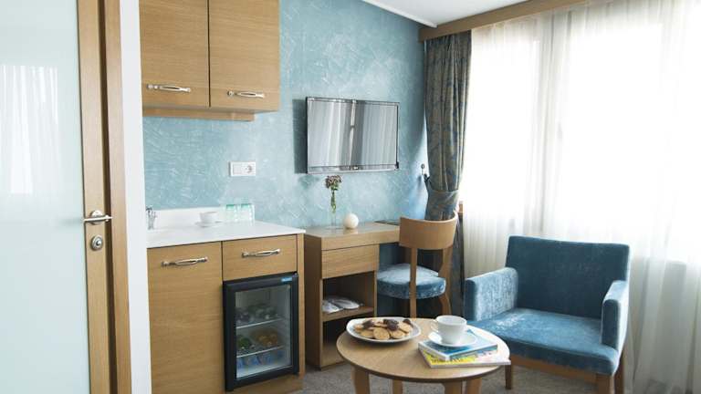 Die Zimmer sind klimatisiert und bieten ein Doppelbett sowie die Möglichkeit für Zustellbetten. Jedes Zimmer ist mit einem Safe, einem Kühlschrank, einem Fernseher und kostenlosem Wifi ausgestattet. Die Badezimmer sind mit einer Dusche und kostenlosen Pflegeprodukten ausgestattet. Es gibt auch schallisolierte Zimmer zur Verfügung.