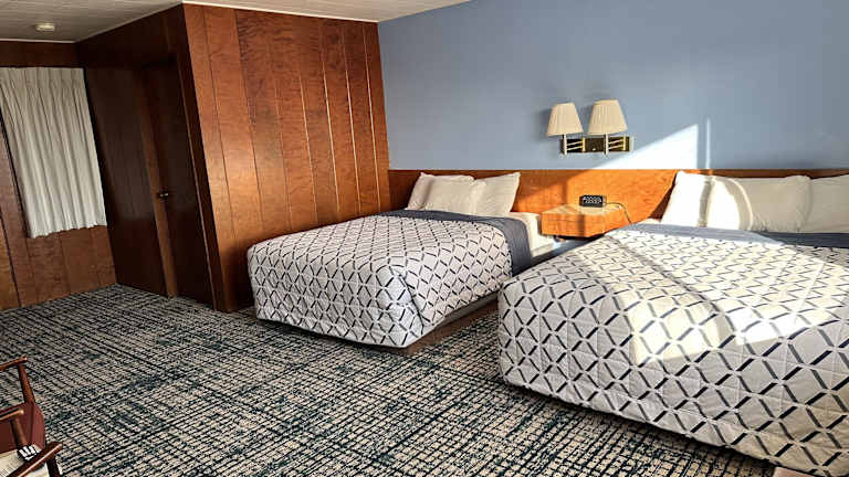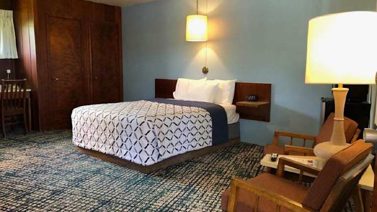 Alle Zimmer der Curly Redwood Lodge sind mit einem Schreibtisch und einem Flachbild-TV ausgestattet. Bettwäsche und Handtücher werden bereitgestellt.