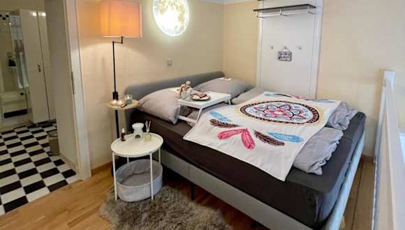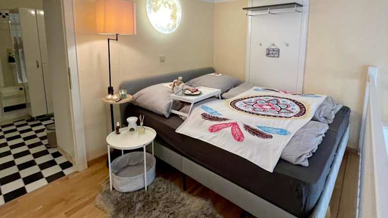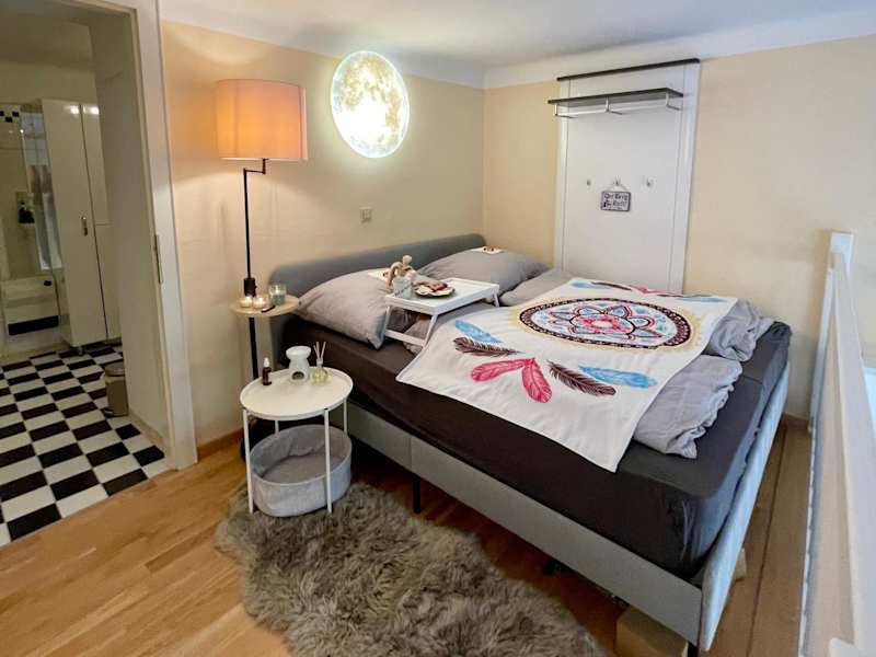 Die Ferienwohnung besteht aus einem Schlafzimmer, einem Wohnzimmer sowie einer voll ausgestatteten Küche, die unter anderem einen Kühlschrank und eine Kaffeemaschine umfasst. Zudem gibt es ein Badezimmer mit Dusche und kostenlosen Pflegeprodukten. Handtücher und Bettwäsche werden bereitgestellt.