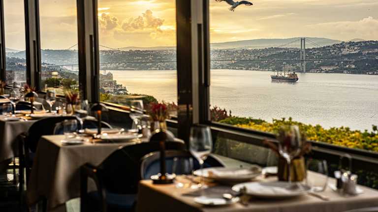 Die gastronomischen Einrichtungen umfassen ein vielseitiges Restaurant, ein Café und eine Bar. Angeboten werden kontinentales Buffetfrühstück, Mittagessen und Abendessen, die abwechslungsreich und schmackhaft gestaltet sind. Das Hotel hat zahlreiche spezielle Verpflegungsangebote, darunter Diätgerichte. Die Stellas Lounge bietet einen Panoramablick auf den Bosporus und abwechslungsreiche Speisen und Getränke.