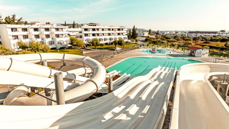 Das Cyprotel Faliraki ist von Gärten in einer ruhigen Gegend umgeben. Es liegt am Rande des lebhaften Ferienortes Faliraki an der Ostküste der griechischen Insel Rhodos. Das 2016 renovierte Hotel liegt nur wenige Gehminuten vom Sand- und Kiesstrand von Faliraki und dem pulsierenden Nachtleben des Stadtzentrums entfernt. Das Hotel verfügt über drei Swimmingpools und einen eigenen Wasserpark mit sechs verschiedenen Wasserrinnen und Rutschen, von denen einer für vier Personen geeignet ist, die sich gegenseitig auf den Grund rennen. Es gibt auch einen flachen Pool mit Rutsche und Wasserspielen für kleine Kinder. Im Hotel können Sie zahlreichen sportlichen Aktivitäten nachgehen, darunter Beachvolleyball, Wasserball, Tennis, Fußball, Boule, Billard und Darts. Das Hotel organisiert an den meisten Abenden Abendunterhaltung, von Tanzshows bis hin zu Karaoke. In Faliraki gibt es viele Geschäfte, Bars und Tavernen sowie Nachtclubs, in denen Sie bis zum Morgengrauen tanzen können. Ein Shuttlebus bringt Sie zum Strand von Faliraki, wenn Sie keine Lust zum Wandern haben. Neben dem Hauptsand gibt es kleinere Strände zu erkunden, darunter die felsige Anthony Quinn Bay. Die Stadt Rhodos liegt nur eine kurze Autofahrt entfernt und bietet sowohl hervorragende Restaurants und Einkaufsmöglichkeiten als auch touristische Attraktionen wie den Rodini-Park und den Großmeisterpalast. Ein Spaziergang durch die vielen Straßen und Gassen der Altstadt ist sehr zu empfehlen. Bitte beachten Sie, dass dieses Hotel aufgrund der Entfernungen innerhalb des Resorts möglicherweise für Gäste mit eingeschränkter Mobilität ungeeignet ist.