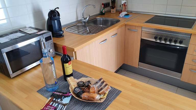 In der voll ausgestatteten Küche stehen ein Kühlschrank und eine Kaffeemaschine zur Verfügung. Es gibt auch die Möglichkeit, im Freien zu grillieren. Keine weiteren Informationen über Verpflegungsmöglichkeiten sind vorhanden.