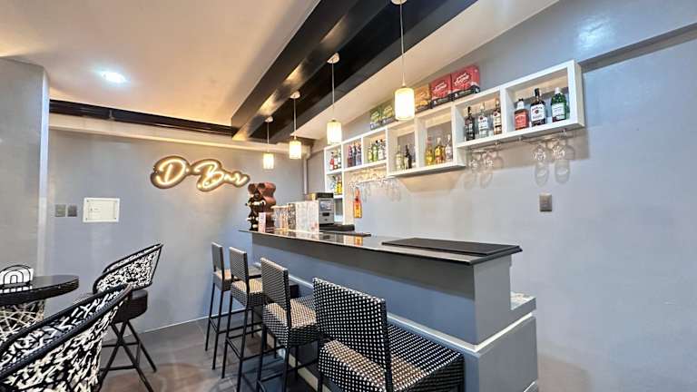 D' Beach Resort hat einen Aussenpool, eine Gemeinschaftslounge und eine Terrasse. Zu den Einrichtungen gehören eine Gemeinschaftsküche und Zimmerservice, ergänzt durch kostenfreies Wifi.