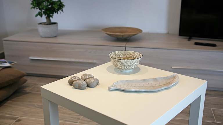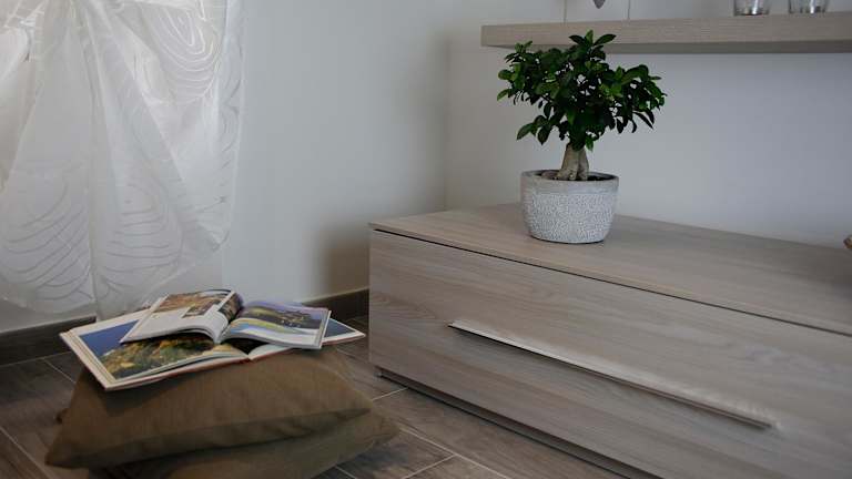 Die Ferienwohnung verfügt über eine voll ausgestattete Küche mit Kühlschrank und Kaffeemaschine sowie ein Badezimmer mit Bidet und Dusche.