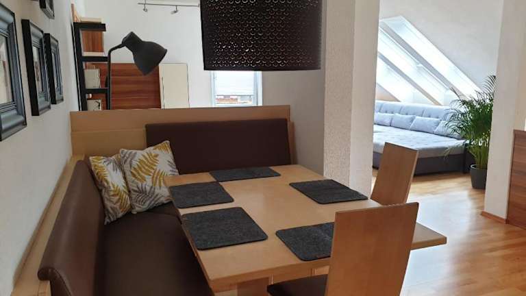 Das Dachgeschoss-Apartment in Landeck hat eine Fläche von 140m² und bietet Übernachtungsmöglichkeiten in einer heimeligen Atmosphäre. Die Unterkunft ist mit kostenlosem Wifi und kostenfreien Privatparkplätzen ausgestattet.