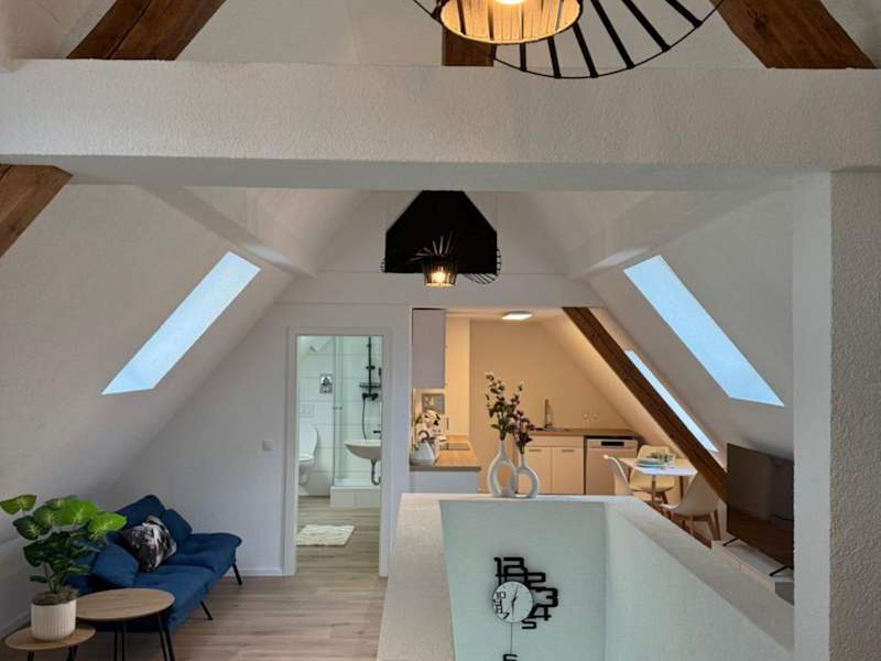 Dachgeschosstraum ist eine Ferienwohnung, die aus einem Schlafzimmer, einem Wohnzimmer sowie einer voll ausgestatteten Küche mit Kühlschrank und Kaffeemaschine besteht. Ein Badezimmer mit Dusche und Haartrockner ist ebenfalls vorhanden. Die Unterkunft wird von einem privaten Gastgeber geführt und ist für Gästen ab einem Alter von 18 Jahren zugänglich. Es handelt sich um eine Nichtraucherunterkunft, in der weder Junggesellen-/Junggesellinnenabschiede noch ähnliche Feiern gestattet sind.