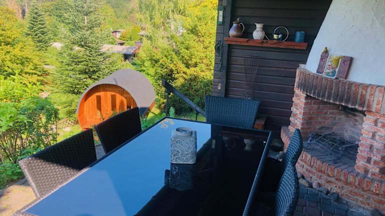 Dachsbau bietet Übernachtungsmöglichkeiten in einem gemütlichen Ferienhaus mit Sauna. Die Gäste können sich auf eine heimelige Atmosphäre freuen und die schöne Umgebung erkunden.