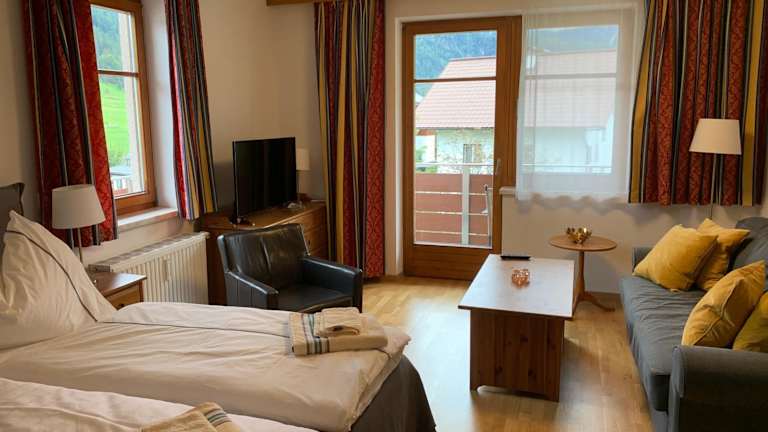 Die Ferienwohnung verfügt über 2 Schlafzimmer, ein Wohnzimmer mit Flachbild-TV, eine gut ausgestattete Küche mit Kühlschrank und Geschirrspüler sowie ein Badezimmer mit Dusche. Zudem bietet sie einen Balkon mit Bergblick und eine Sonnenterrasse. Handtücher und Bettwäsche werden zur Verfügung gestellt.