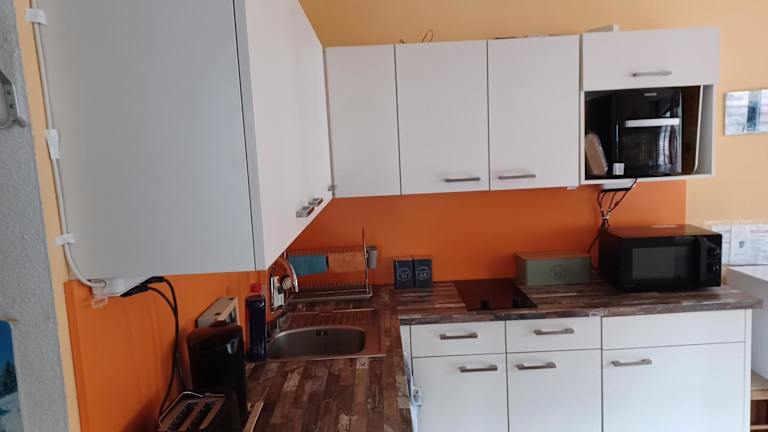 Die Ferienwohnung verfügt über eine gut ausgestattete Küche mit Kühlschrank, Ofen und Mikrowelle. Sie umfasst ein Wohnzimmer mit Sitzbereich und Essbereich, 2 Schlafzimmer und 1 Badezimmer mit Dusche und Badewanne. Handtücher und Bettwäsche werden bereitgestellt.
