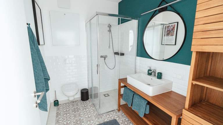 Die Unterkunft umfasst 1 Schlafzimmer, eine Küche mit Kühlschrank und Geschirrspüler sowie 1 Badezimmer mit Dusche und Haartrockner. Handtücher und Bettwäsche sind ebenfalls vorhanden.