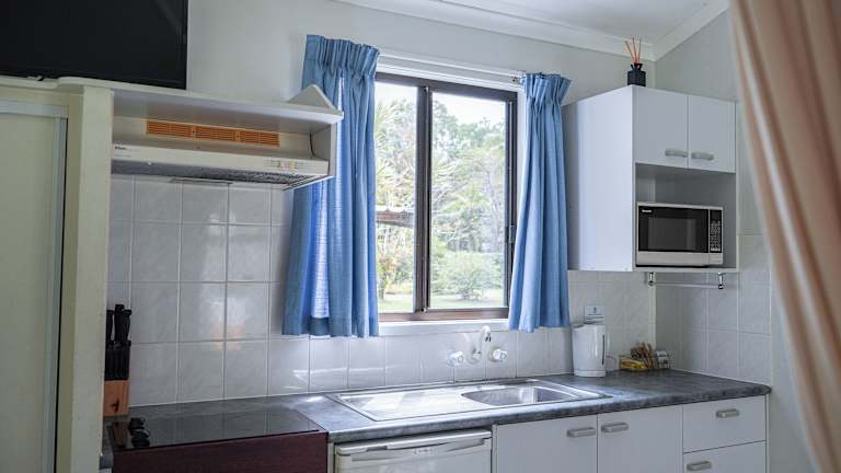 Einige Wohneinheiten des Daintree Beach Resort verfügen über eine Küchenzeile, die mit einem Kühlschrank und einer Mikrowelle ausgestattet ist. Diese Annehmlichkeit bietet den Gästen die Möglichkeit, ihre eigenen Mahlzeiten zuzubereiten und sich damit eine heimelige Atmosphäre zu schaffen.