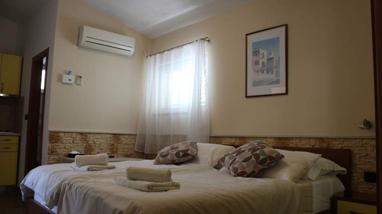 Die klimatisierten Zimmer im Hotel Dalmacija verfügen über einen Balkon, auf dem Sie die frische Luft und die Aussicht genießen können. Zur Ausstattung gehören auch ein Flachbild-TV und ein eigenes Bad mit einer Dusche und kostenfreien Pflegeprodukten. Einige Zimmer sind zudem mit einer praktischen Küchenzeile mit einem Kochfeld ausgestattet.