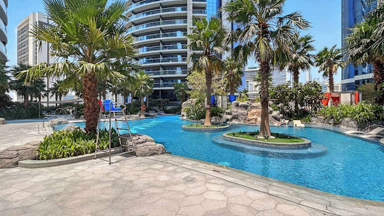 Die Unterkunft Damac Paramount - Super Deluxe 2BR - Best City View - High Level bietet eine geräumige Ferienwohnung mit 2 Schlafzimmern, einem Wohnzimmer, einer voll ausgestatteten Küche und 2 Badezimmern. Sie verfügt über einen Balkon mit Aussicht auf die Stadt und das Wasser sowie einen ganzjährig geöffneten Aussenpool, einen Fitnessraum und eine Sauna. Auf dem Gelände gibt es zudem einen Garten und eine Terrasse.