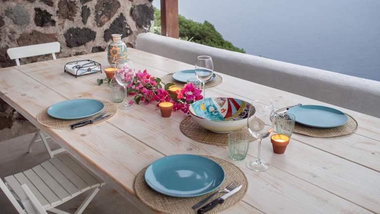 Das Dammuso sulla scogliera - Pantelleria bietet eine heimelige Unterkunft mit einem Garten und einer Terrasse. Das Ferienhaus hat eine hervorragende Aussicht auf das Meer und bietet kostenfreies Wifi.