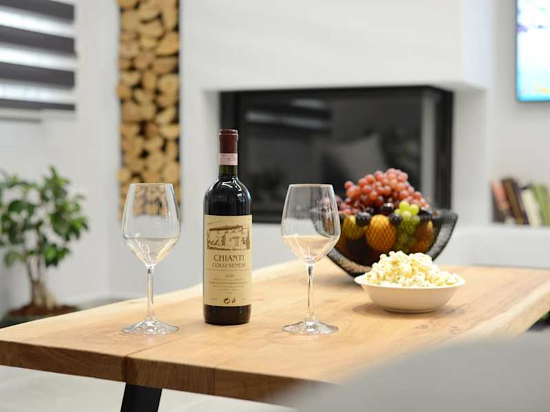 Die Villa ist geschmackvoll eingerichtet und bietet Platz für bis zu 4 Gäste. Sie verfügt über eine voll ausgestattete Küche mit Kühlschrank und Kaffeemaschine, einen Wohnbereich sowie 2 Schlafzimmer. Handtücher und Bettwäsche werden bereitgestellt. Die Zimmer sind schallisoliert und bieten eine angenehme Rückzugsmöglichkeit.