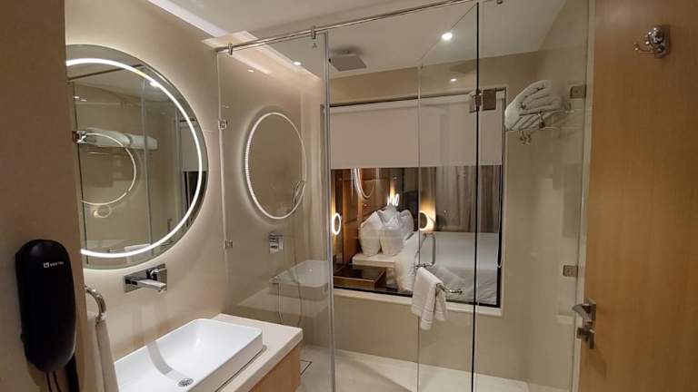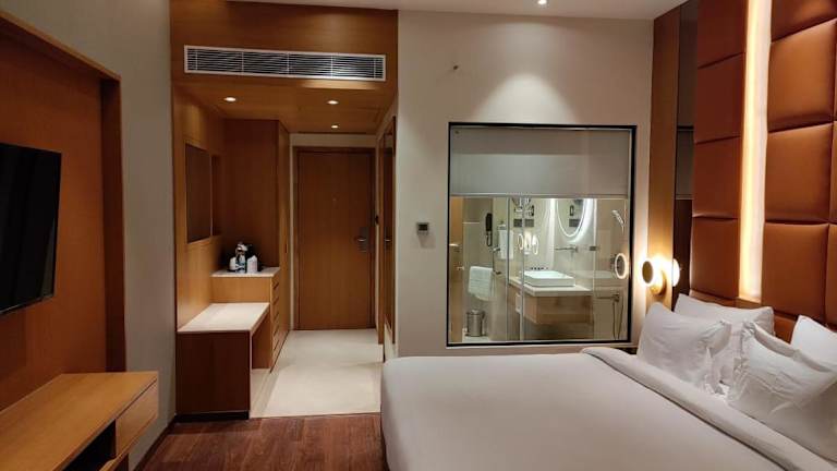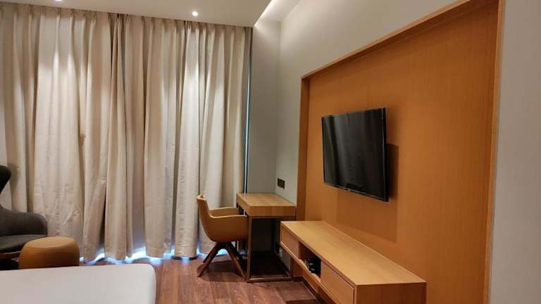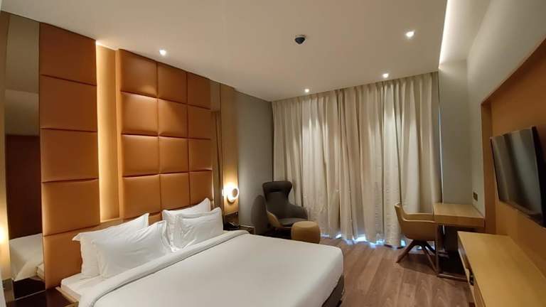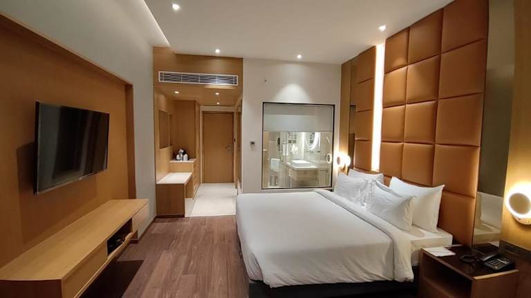 Die Zimmer sind klimatisiert und verfügen über ein eigenes Badezimmer mit Dusche. Zur Ausstattung gehören Bettwäsche und Handtücher sowie ein Safe. Für die Bequemlichkeit der Gäste sind die Zimmer mit einem Wasserkocher, einer Minibar und einem Flachbild-TV eingerichtet.