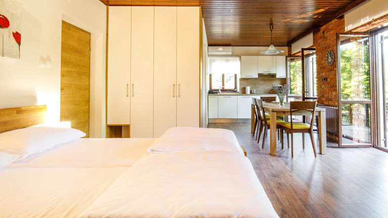 Die Wohneinheiten sind mit einer voll ausgestatteten Küche mit Esstisch, einem Flachbild-TV mit Satellitenkanälen sowie einem eigenen Badezimmer mit Dusche, kostenlosen Pflegeprodukten und Haartrockner ausgestattet. Zudem gibt es einen Kühlschrank, eine Mikrowelle, eine Herdplatte, eine Kaffeemaschine und einen Wasserkocher. Zusätzlich stehen Grillmöglichkeiten zur Verfügung.