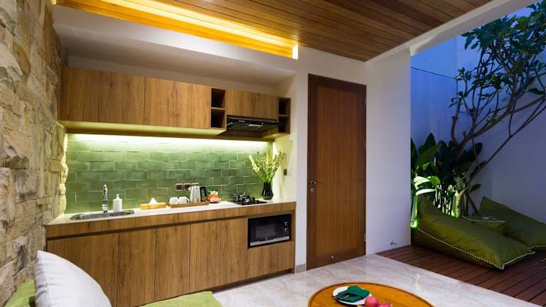 In der Danka Villa Sanur wird jeden Morgen ein à la carte, amerikanisches oder asiatisches Frühstück angeboten. Es gibt auch eine voll ausgestattete Küche, in der Gäste selbst zubereiten können. Essenslieferung in die Unterkunft ist ebenfalls verfügbar.