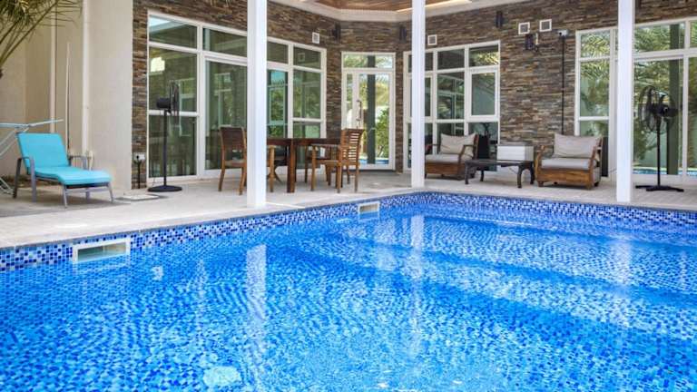 Die Dar 66 Pool Chalets mit Whirlpool sind kleine, private Villen, die sich ideal für Familienferien oder romantische Auszeiten eignen. Gäste können sich auf Selbstverpflegung und einen Selbst-Check-in freuen. Jede Unterkunft verfügt über einen eigenen Pool, der im Sommer gekühlt und im Winter beheizt wird, sowie über einen Gasgrill für gemütliche Grillabende im Freien. Die unterkunft bietet zudem eine angenehme Atmosphäre, um dem Stadttrubel zu entfliehen.