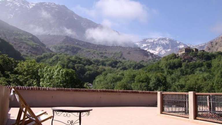 Das Hotel liegt im Ort Imlil, nur ca. 100 m vom Stadtzentrum entfernt. Der Flughafen ist etwa 65 km entfernt. Das Riad befindet sich in ruhiger Natur am Stadtrand und in der Nähe des Flusses, mit Blick auf die Kasbah und den Toubkal.