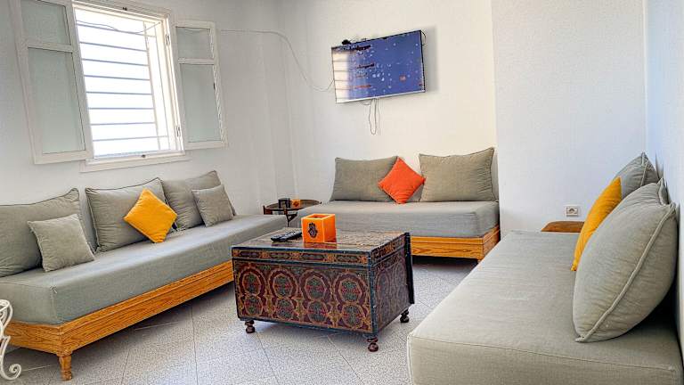 Das Joseph Nahoun Apartment in El Jadida bietet eine komfortable Unterkunft in Strandnähe. Mit Blick auf die Hafenfestung El Jadida und Porte de la Mer können die Gäste die schöne Aussicht von der Terrasse aus genießen. Die Apartments sind gut ausgestattet mit einer Küche, einem Plasmafernseher und kostenlosem WLAN. Kostenlose Parkplätze stehen zur Verfügung und ein Flughafentransfer kann arrangiert werden.
