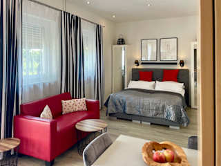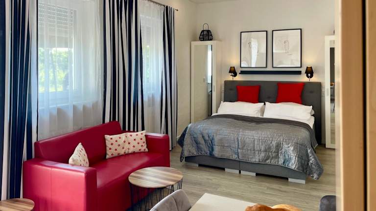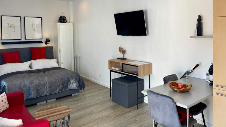 Die Ferienwohnung verfügt über 1 Schlafzimmer, ein Wohnzimmer, eine komplett ausgestattete Küchenzeile mit Kühlschrank und Kaffeemaschine sowie 1 Badezimmer mit Dusche und Haartrockner. Handtücher und Bettwäsche werden bereitgestellt.