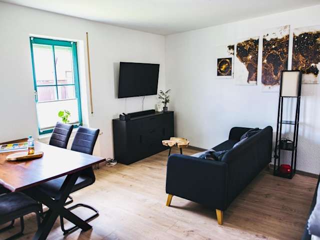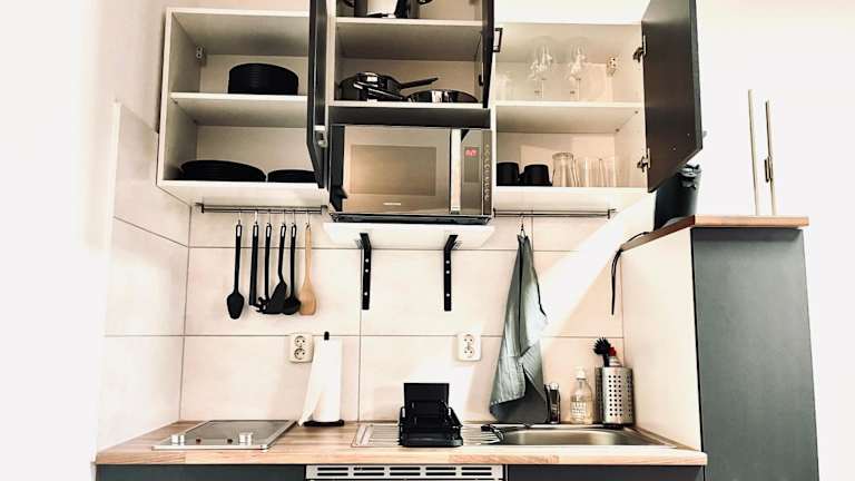 Die Ferienwohnung umfasst 1 Schlafzimmer, einen Flachbild-TV mit Satellitenkanälen und eine gut ausgestattete Küche mit Kühlschrank und Ofen. Zur Ausstattung gehört auch ein Badezimmer mit Dusche. Handtücher und Bettwäsche werden bereitgestellt.
