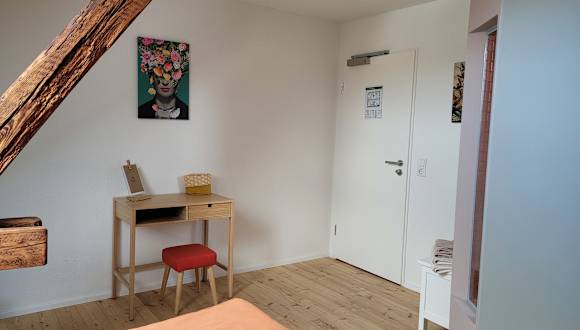 Unsere Zimmer im ehemaligen Winzerhaus haben wir nach dem Motto „bio, echt, nachhaltig“ renoviert und eingerichtet. Massivholzbetten, warme Holzfußböden, natürliche Kreidefarben und originelle, chic gestaltete Bäder. Jedes Zimmer hat seinen eigenen Charme. Und natürlich sien eigenes, kleines Bad. Es gibt insgesamt 8 Zimmer, davon 7 Doppelzimmer (Bettenbreite zwischen 1,60 und 1,80 m) und 1 Einzelzimmer. Wir sind flexibel. Auf Anfrage machen wir Vieles gerne möglich. Kinder dürfen in der Mitte schlafen oder wir besorgen ein Bettchen.