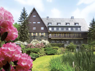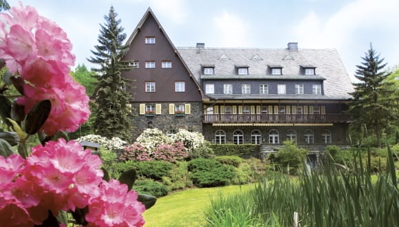 Vom Hotel aus kann man sternförmig in kürzester Zeit viele Sehenswürdigkeiten der umliegenen Städte und Orte erreichen. Schneeberg mit seinem Weihnachtsmarkt & dem "Lichtlfest", dem Cranach-Altar in der St.Wolfgangskirche und vielen typ. Erzgebirgs-Holzkunst-Stuben. Zwickau mit dem August-Horch-Museum, den Priesterhäusern, dem Haus von Robert-SChumann & Clara Wieck oder Art Deco & Jugendstil-Wohnviertel, etc... Die Talsperre Eibenstock, Chemnitz mit dem Industrie-Museum, der Kunstgallerie Museum Gunzenhauser, das TIETZ, und vieles mehr. Weiter geht es ins Erzgebirge nach Bad Schlema, Aue, Schwarzenberg, Annaberg-Buchholz - überall kann man hier die berühmten Schnitzfiguren, Schwippbögen, Räuchermänner und Nußknacker finden. Bergwerksstollen laden zum Einfahren ein und Räucherkerzen kann man auch selber machen . . . Und die Weihnachtsmärkte erst. Nehmen Sie den Glühweinzug und fahren zu den Märkten per Bahn. Und in Hartenstein lässt es sich schön wandern, die Natur erkunden - zum Beispiel zur Ruine Isenburg oder zur Ruine des Schloß Hartenstein. Auch per E-Bike nach Bad Schlema zum Floßgrabenweg. Oder man besucht die Burg Stein mit dem Feudal-Museum. Schon Goethe bereiste diese naturreiche Gegend zwischen Zwickau und Böhmen gerne. Es ist eine historische Gegend mit vielen Aspekten. Zu jeder Jahreszeit ist es im Erzgebirge „genau richtig“. Schon ein Schritt vor die Tür genügt, um Körper und Seele freien Lauf zu lassen. 56 km Wege durch ausgedehnte Buchenwälder und entlang der Zwickauer Mulde, laden ein zum Wandern, Nordic-Walking, Reiten, Moutainbiking und zu Pferdekutschfahrten. Ruhesuchende, Alltagsflüchtige & Verliebte finden hier beste Voraussetzungen. - Aber das versteht sich auf dem malerischen Flecken Erde um das Jagdhaus Waldidyll von selbst.