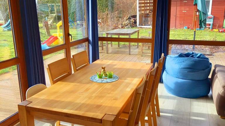 Das kleine Haus bietet eine heimelige Ferienwohnung mit Terrasse und Veranda/Patiomöglichkeiten. Die Unterkunft wird von einem privaten Gastgeber geführt und ist optimal für Familien geeignet. Ein Kinderspielplatz gehört ebenfalls zur Ausstattung.