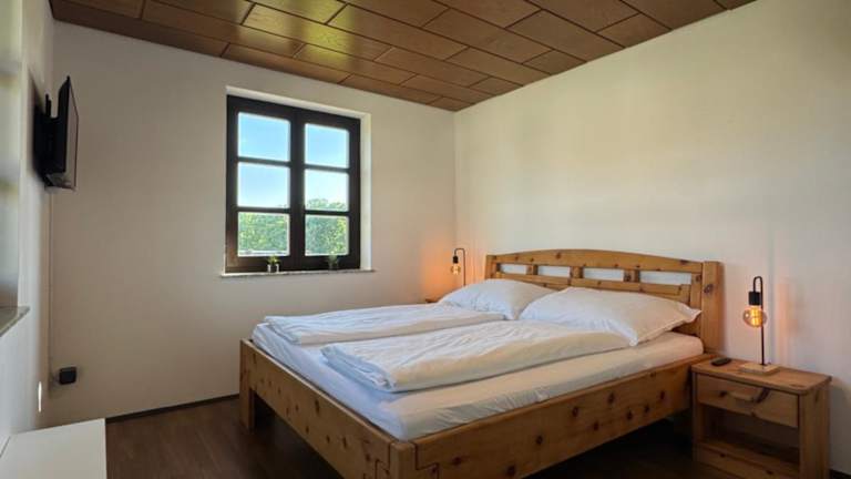 Die Ferienwohnung besteht aus einem Schlafzimmer, einem Flachbild-TV, einer gut ausgestatteten Küchenzeile mit einem Kühlschrank und Geschirrspüler sowie einem Badezimmer mit Dusche. Die Unterkunft ist haustierfreundlich und bietet Annehmlichkeiten wie Heizung und Gartenmöbel.